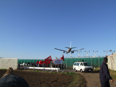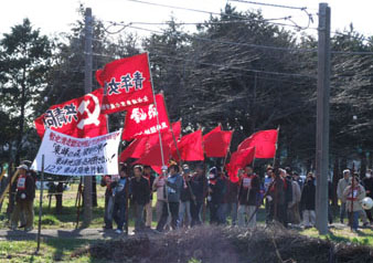 集会を中断し、暫定滑走路が一望できる開拓組合道路を折り返すコースデモに移っ