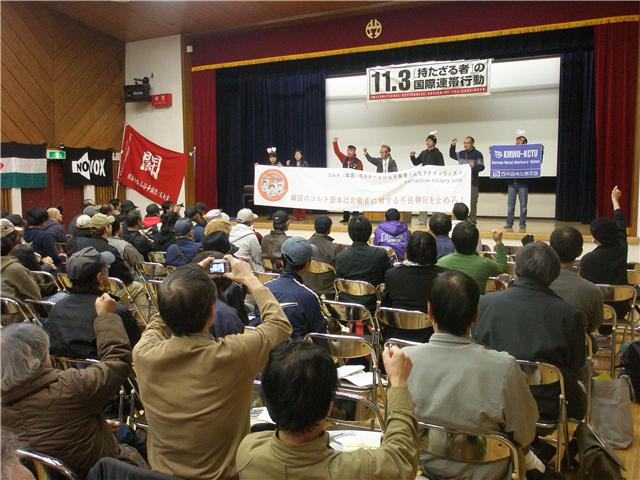 11月3日、千駄ヶ谷区民会館で[持たざる者]の国際連帯行動が行われ、約百人が参加した。