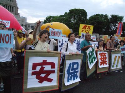 六月十九日、永田町・社会文化会館ホールで「60年安保闘争から50年 もうやめよう!日米安保条約----米国・日本・沖縄の新しい関係をめざして」集会が2010安保連絡会の主催で開かれ、三百五十人が参加した。集会の後、国会正門前で「安保NO!」「怒」のシュプレヒコールそして、首相官邸前での訴え・首相への申し入れ行動を行った。この行動には山口・広島、静岡、愛知、神奈川(座間・横須賀)、横田、札幌、ピースサイクル東京など全国で反基地・反安保闘争や反天皇制を闘う仲間二百八十人が参加した。