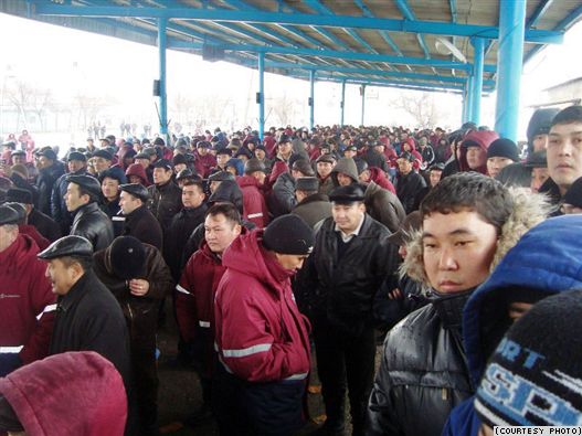 3月4日、ジャナオゼン市(西カザフスタン)の石油労働者一万人がストライキを行った。この数は国営カズムナイ・ガス社の石油採掘部門従業員のほぼ100%に達する。同社は民営化され、現在はカザフスタン大統領ナザルバイエフの義理の息子にあたるティムール・クリバエフが所有している。20人の労働者が無期限のハンストに突入すると宣言した。労働者たちは、労働条件の改善、賃上げとともに、かれらの部門の民営化の撤回を要求している。