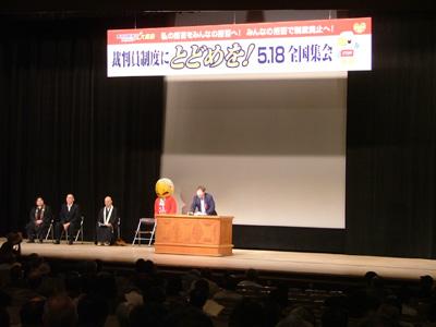 5月18日、裁判員制度はいらない!大運動は、日比谷公会堂で「裁判員制度にとどめを!5・18全国集会」を行い、1800人が参加した。