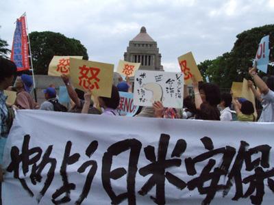 六月十九日、永田町・社会文化会館ホールで「60年安保闘争から50年 もうやめよう!日米安保条約----米国・日本・沖縄の新しい関係をめざして」集会が2010安保連絡会の主催で開かれ、三百五十人が参加した。集会の後、国会正門前で「安保NO!」「怒」のシュプレヒコールそして、首相官邸前での訴え・首相への申し入れ行動を行った。この行動には山口・広島、静岡、愛知、神奈川(座間・横須賀)、横田、札幌、ピースサイクル東京など全国で反基地・反安保闘争や反天皇制を闘う仲間二百八十人が参加した。