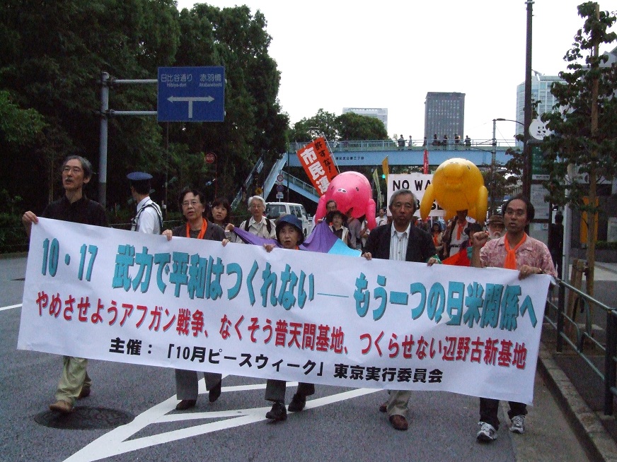 十月十七日、東京・芝公園23号地で「武力で平和はつくれない--もう一つの日米関係へ やめさせようアフガン戦争、なくそう普天間基地、つくらせない辺野古新基地」国際共同行動が10月「ピースウィーク」2010・東京実行委員会主催で開かれ、六百人が参加した。
