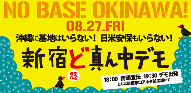 ★デモ翌日の8月28日には、7月のデモを共催した「辺野古への基地建設を許さない実行委員会」のイベントがあります! 8月28日18時半から文京区民センターにて。http://www.jca.apc.org/HHK/NoNewBases/10NNB/NNBJ_8.28tokyoaseembly.html