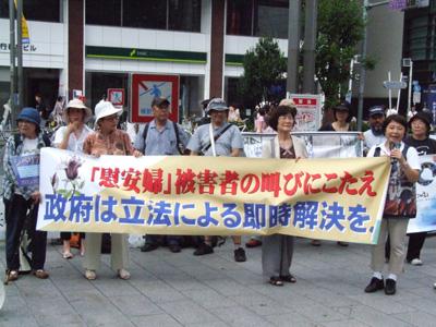 連絡協議会のメンバーが、元軍隊慰安婦のイ・ヨンスさんに成り代わって「私は82歳だが、200歳まで生きて日本政府を追及する。日本政府は謝罪と補償をせよ」と話した。