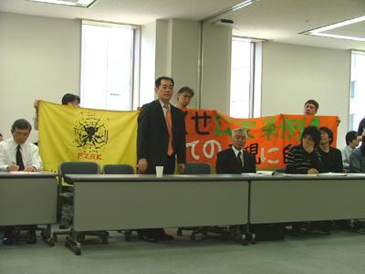 訴訟団は、2月26日、麻生邸リアリティツアーで起きた不当逮捕事件(2008年10月26日、東京都公安条例違反〔無届け集団示威運動〕、公務執行妨害罪の現行犯逮捕で10日の不当勾留)に対してその被弾圧者(園良太さん、渡邊洋一さん、Aさん)と違法な家宅捜索(コンピューターの強奪など)を受けたフリーター全般労組が原告となり、弾圧を強行した警視庁の責任機関である東京都、違法な勾留状及び捜索差押令状を発布した裁判所の国を相手にして、権力犯罪を許さず、路上の表現の自由を求め、公安条例の撤廃をかちとっていくために国賠訴訟の闘いに踏み出した。