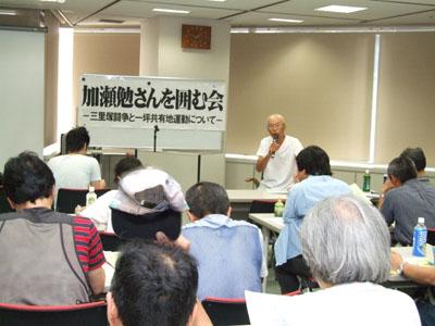 7月19日、三里塚芝山連合反対同盟大地共有委員会(2)、三里塚・暫定滑走路に反対する連絡会は、東京都しごとセンターで「三里塚闘争と一坪共有地運動について-7・19 加瀬 勉さんを囲む会」を行い、53人が参加した。