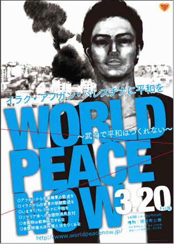WORLD PEACE NOWはイラク戦争開始から6年後の3月20日、「イラク、アフガニスタン、パレスチナに平和を」「武力で平和はつくれない」をメインスローガンに東京・茅場町の坂本町公園に集まって、集会・デモを呼びかけている(午後2時開始、パレード出発午後3時)。この集会はアフガニスタンへの「対テロ」戦争や、