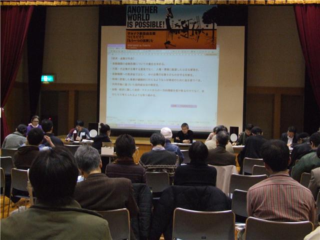 ブラジル・アマゾン河口のベレンで1月27日から2月1日まで開催されている世界社会フォーラム(WSF)に連帯して、1月31日、東京の京橋プラザで「サヨナラ 新自由主義 つくりだそう『もう一つの世界を』 WSF in TOKYO」が開催された。ベレンではオープニングのデモに10万人近くが参加し、参加者登録も9万1千人に及んでいる。