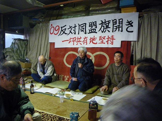 成田空港会社は、2010年3月の成田空港B滑走路供用の強行に向けた東峰住民追い出し攻撃と連動して、08年12月に入って空港用地内の八カ所の三里塚一坪共有者約千人に対して土地の権利を明け渡せというどう喝文をばらまいた。すでに反対同盟大地共有委員会は、共同通信が空港会社の一坪共有地売却強要に関する報道(08・5・10)を会社のキャンペーン開始として捉え、全国の仲間に対して「一坪共有地断固堅持」