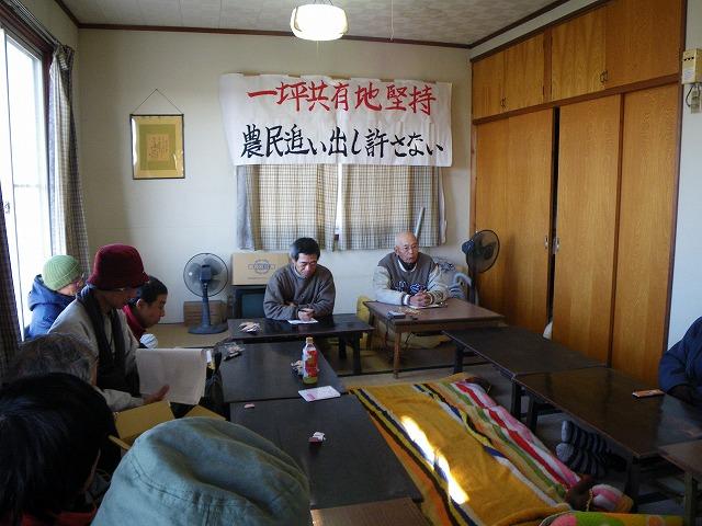 1月10日、三里塚芝山連合空港反対同盟は、横堀農業研修センターで09年旗開きを行い、30人が参加した。