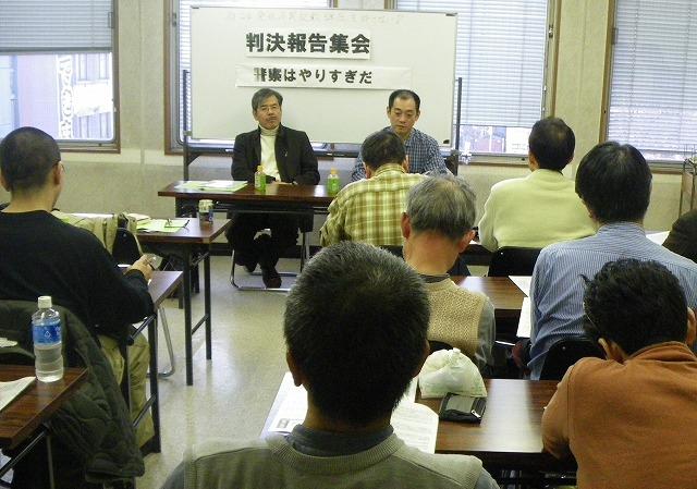 川村理弁護士は「免状不実記載という容疑での不当弾圧は、80年代から90年代に活動家の住所を特定する目的で猛威を振るった。今回、最初はどうかなと思ったが、県側書面の論理的飛躍、裁判所の警察に対する積極的な文書提出命令などを見て勝てるかなと思った。もし控訴されれば、東京高裁は大変だろうが、そのときは地裁にもまして主張を前面に出すことが大切」と分析した。