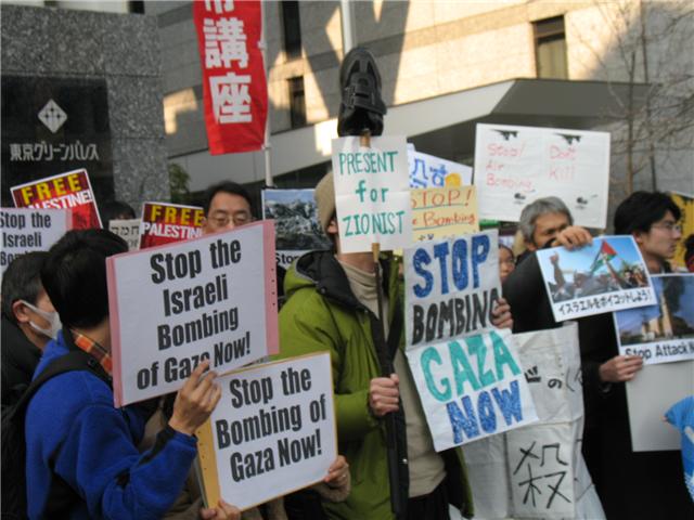 イスラエルは、この不正・不法な軍事攻撃が「ハマスのミサイル攻撃に対する当然の自衛」と居直っている。しかし2006年のパレスチナ議会選挙で圧勝したハマスとの対話を拒否し、パレスチナ民衆の民主主義的な意思を踏みにじってガザの封鎖を続けているイスラエル・シオニスト政権とそれを支える米国こそが、中東の公正な和平、民主主義と人権を破壊している。