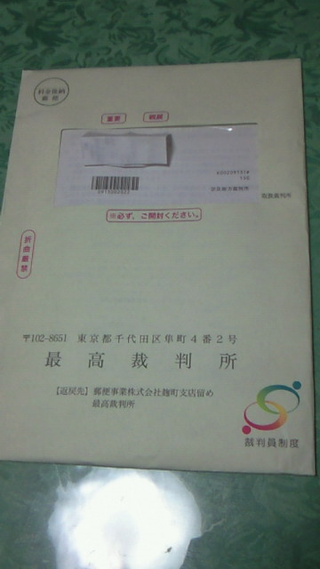 * 通知票の受け取りを拒否した方、候補者名簿から削ることを裁判所に求めた方は、そのことを「裁判員制度はいらない! 大運動」事務局にお知らせください。