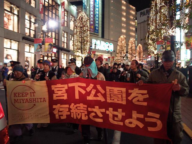 十二月五日、宮下公園のナイキ公園化に反対するデモが行われ、約百二十人が参加した。主催はみんなの宮下公園をナイキ化計画から守る会、九月、十月に続いて三回目である。http://minnanokouenn.blogspot.com/