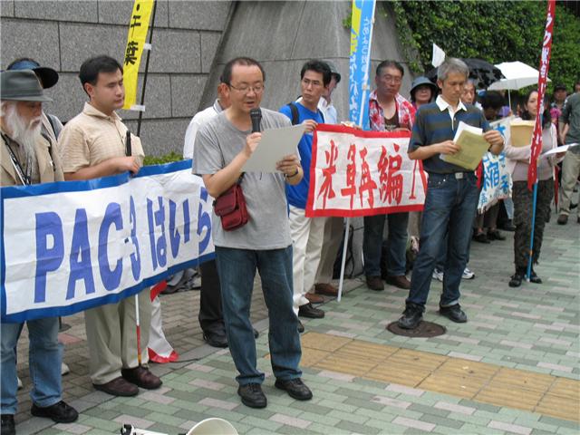 日本の戦争国家化に重大な1ページが刻まれてしまったが、夜の行動を初めとして配備撤回を勝ち取り、原子力を必要としない社会に向けて進んでいこう。原子力を必要とする社会は、少数のものが、膨張する資本市場における効率化に追われ、際限のない軍備拡大におわれる社会である。通りがかりの右翼街宣車には「1発の銃弾は10万の動員に勝る」と書いてあった。われわれは千万の参集がこの日やってきた危険な鉄の塊を追い返す日をたぐりよせるのだ。