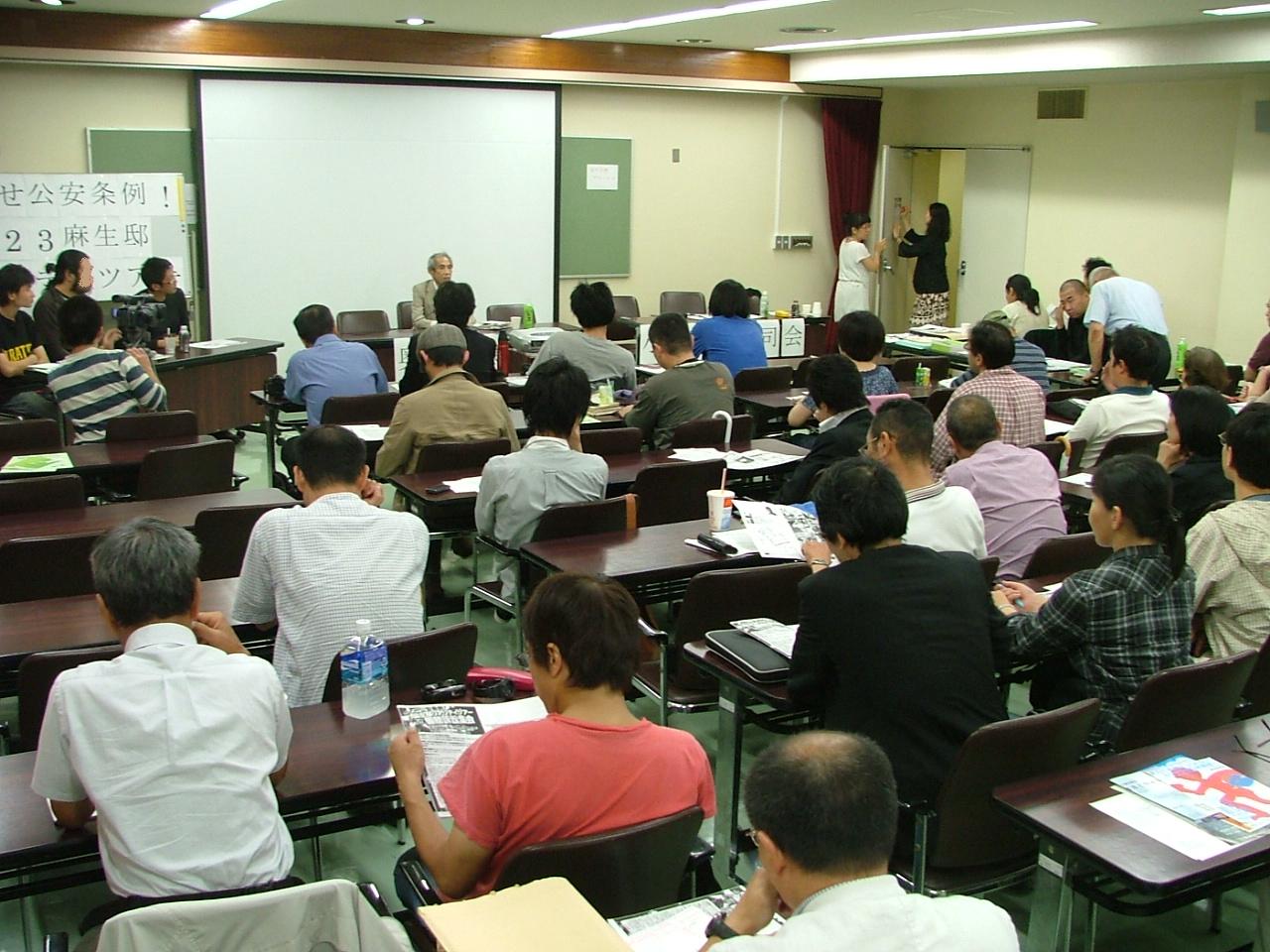 「麻生邸リアリティツアー事件」国家賠償請求弁護団の大口昭彦弁護士は、「いまなぜ公安条例を問うのか―公安条例違憲判決に向けて」と題して問題提起し、「麻生邸デモは極めて当然の主権行使行為であり、悪法を実践的に批判するものであった。表現の自由の権利を守りきるために裁判に勝利していこう」と訴えた。